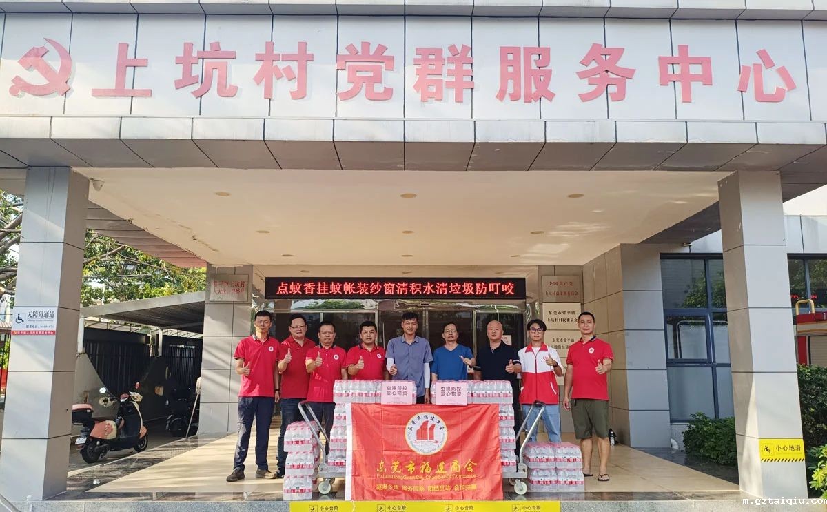 △图为必威国际备用网址常平办事处(分会)向上坑村捐赠50箱饮用水,助力辖区灭蚊防控工作。